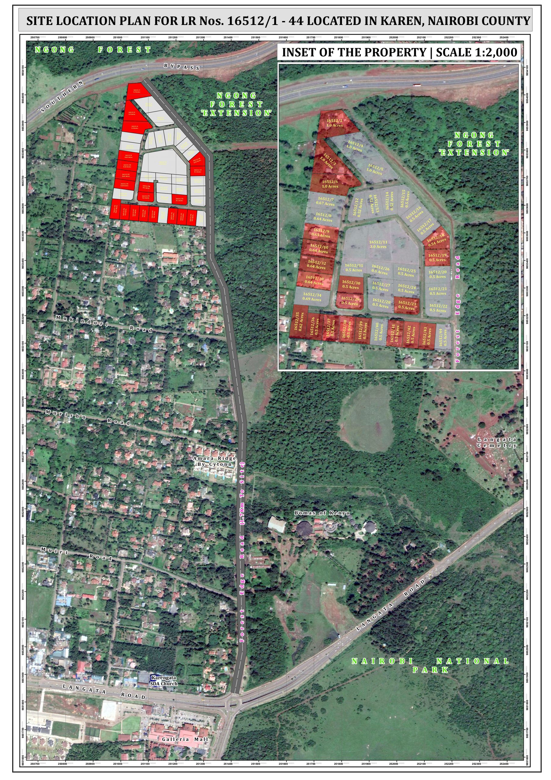 Located in Karen, one of Nairobi’s leading luxury suburb are these prime 0.5 acre to 1 acre parcels. The land has been professionally subdivided and is in a gated community set up offering exclusivity and privacy. An exterior perimeter wall, 24hr security, communal Bore hole are part of the amenities for the residents already living in the community.
