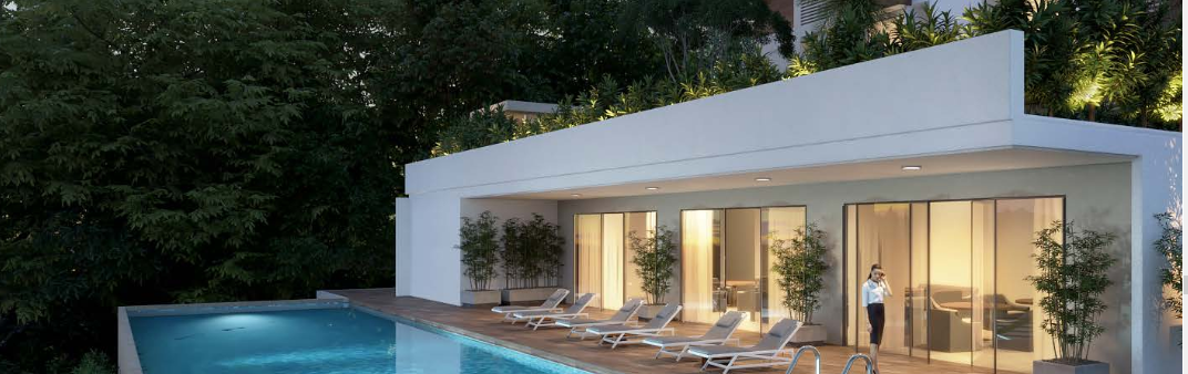 *A three leveled club house with an entertainment hall (fitted with kitchen), heated infinity pool, a fully equipped gym (with changing rooms) and a roof terrace with greenery.
