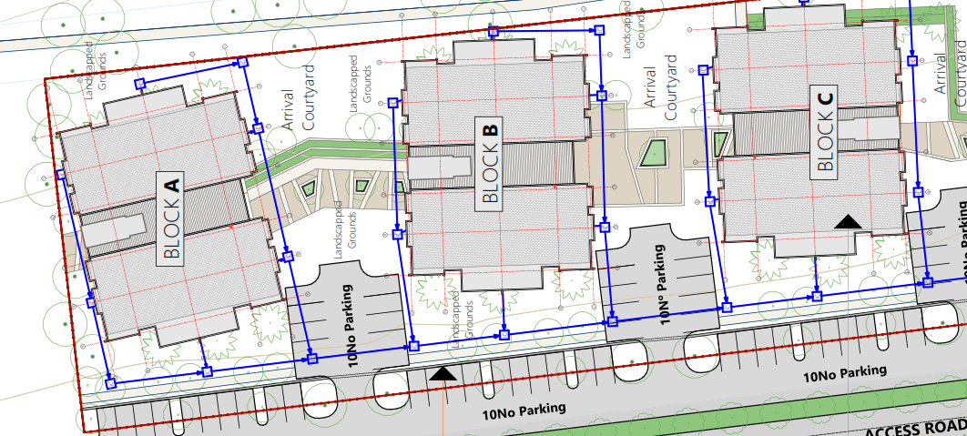 *Landscaped courtyard between one block and another with ground area of up to 530 sq.m.